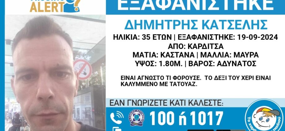Συναγερμός έχει σημάνει στις αρμόδιες Αρχές, έπειτα από την εξαφάνιση ενός 35χρονου από την Καρδίτσα, τα ίχνη του οποίου χάθηκαν στις 19 Σεπτεμβρίου.
