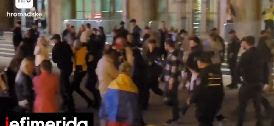 Βίντεο κατέγραψε τη στιγμή που στρατονόμοι σέρνουν δύο άνδρες κατά την έξοδό τους την Παρασκευή από τον συναυλιακό χώρο «Palace of Sports» στο Κίεβο, όπου είχαν παρακολουθήσει συναυλία του ουκρανικού ροκ συγκροτήματος Okean Elzy.