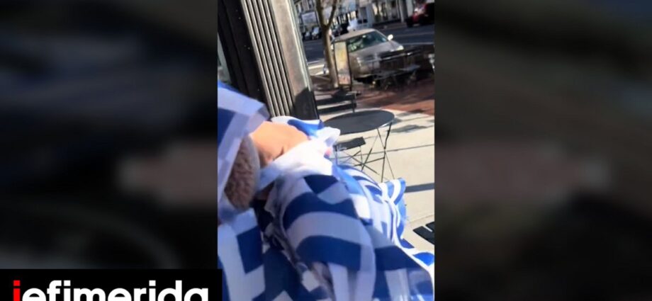 Ειδικότερα, άρχισε να ξεκρεμάει ελληνικές σημαίες έξω από ένα γυράδικο στο Μοντκλέρ, φωνάζοντας «ελευθερώστε την Παλαιστίνη, αυτό είναι γενοκτονία».