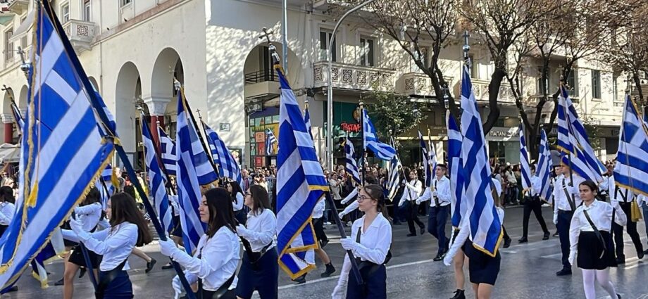 Με καμάρι και υπερηφάνεια παρήλασαν σήμερα οι μαθητές και οι μαθήτριες των σχολείων από τη σημαιοστολισμένη οδό Τσιμισκή στο πλαίσιο των εορτασμών της 28ης Οκτωβρίου.