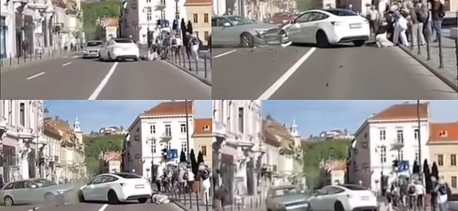 Όπως βλέπουμε στις εικόνες, το Tesla κινείται με αργή ταχύτητα στην δεξιά λωρίδα. Ξαφνικά ένας πεζός… Πηγή