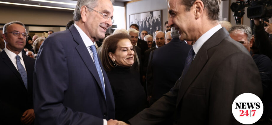 Μία τυπική χειραψία και χαιρετισμό αντάλλαξε ο πρωθυπουργός με τους δύο πρώην προέδρους της ΝΔ στο συνέδριο του Ιδρύματος “Κ. Καραμανλής”, ενώ χωροταξικά κάθισαν με ένα διάδρομο ανάμεσα τους.