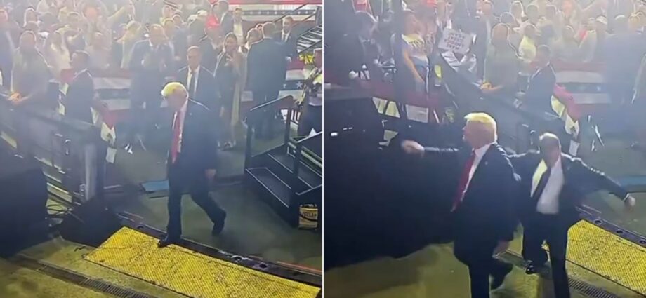Ωστόσο, ο Τραμπ συνέχισε να βαδίζει χωρίς να έχει επηρεαστεί από το γεγονός, χαιρετώντας το πλήθος και υψώνοντας τον αντίχειρά του, σε μια κίνηση που μας υπενθύμισε την χαρακτηριστική του αυτοπεποίθηση.