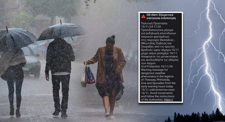 Το μήνυμα αναφέρει: «Προειδοποιητικό μήνυμα για την εκδήλωση επικίνδυνων καιρικών φαινομένων σε Θεσσαλία, Εύβοια, και Σποράδες από τις πρώτες βραδινές ώρες σήμερα 15/11/24 έως και… Πηγή