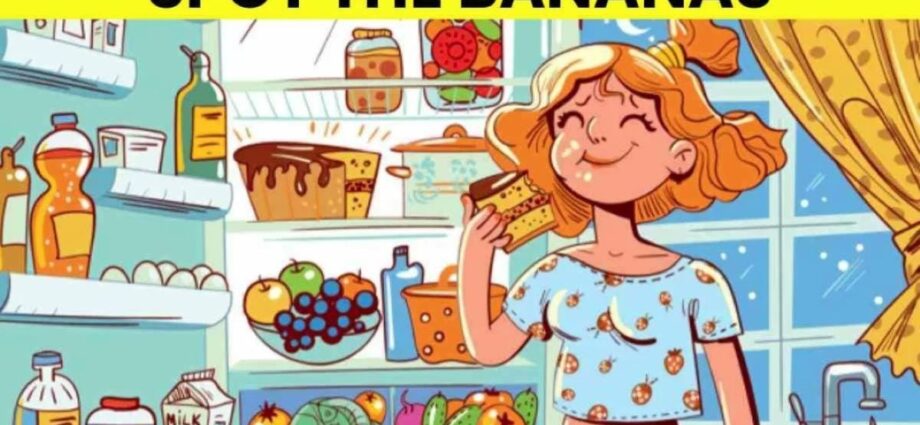 Στην παρακάτω εικόνα βλέπετε μία γυναίκα να τρώει μπροστά στο ψυγείο. Κάπου βρίσκονται μερικές μπανάνες. Μπορείτε να τις εντοπίσετε σε 7 δευτερόλεπτα;