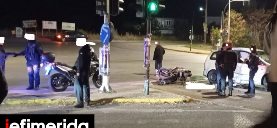 Το τροχαίο δυστύχημα σημειώθηκε στην εθνική οδό Αντιρρίου-Ιωαννίνων, στο Αγρίνιο και συγκεκριμένα στον κόμβο της Μεγάλης Χώρας. Σημειώθηκε σφοδρή πλαγιομετωπική σύγκρουση Ι.Χ. επιβατικού με δίκυκλο, στο οποίο επέβαιναν δυο νερά άτομα.