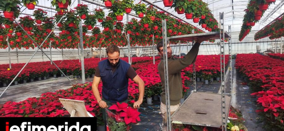 Οικογένεια από την Αγχίαλο Θεσσαλονίκης εξάγει πάνω από εκατό χιλιάδες αλεξανδρινά – το φυτό των Χριστουγέννων / Φωτογραφία: Γιώργος Αλμπανίδης για ΑΠΕ-ΜΠΕ