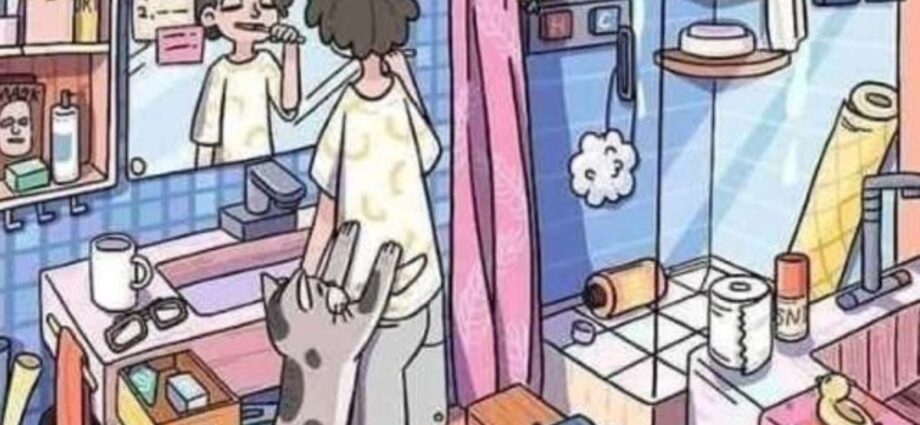 Στην παρακάτω εικόνα μπορείτε να δείτε έναν άνδρα να πλένει τα δόντια του στο μπάνιο. Κάπου βρίσκεται μία μπάλα του ράγκμπι. Μπορείτε να την βρείτε σε 9 δευτερόλεπτα;