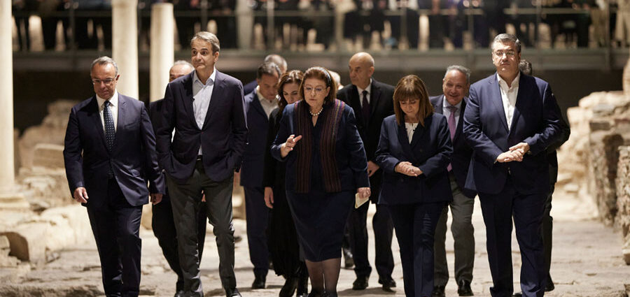 Ο Πρωθυπουργός Κυριάκος Μητσοτάκης ξεναγήθηκε με την Προέδρο της Δημοκρατίας Κατερίνα Σακελλαροπούλου, από την Υπουργό Πολιτισμού Λίνα Μενδώνη, στον αρχαιολογικό χώρο και τα ευρήματα των ανασκαφών του σταθμού «Βενιζέλου» του Μετρό Θεσσαλονίκης.