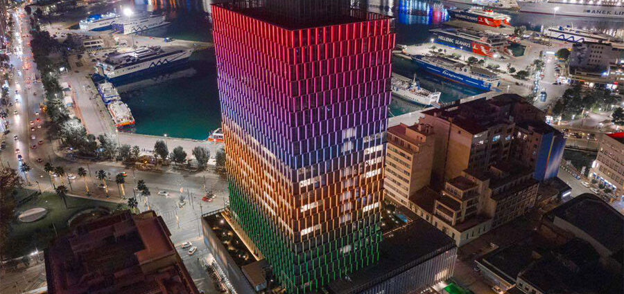 Είναι η πρώτη φορά που ο Πύργος του Πειραιά φωταγωγήθηκε σε πλήρη λειτουργία με λαμπερά χρώματα και με έναν εντυπωσιακό, ειδικό φωτισμό, ο οποίος γέμισε την πόλη με εορταστική λάμψη, συναίσθημα, παλμό και φως, αναδεικνύοντας τη μαγευτική πλευρά του Πειραιά.