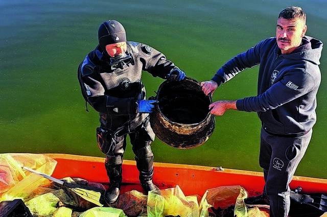 Μια καινοτόμος δράση που ξεκίνησε πριν από λίγες εβδομάδες στα Ιωάννινα φέρνει στην επιφάνεια απαντήσεις που εκπλήσσουν: μοτοσικλέτες, ποδήλατα, φωτιστικά, τραπέζια, ελαστικά αυτοκινήτων αλλά και… στρατιωτικά κράνη, όλμοι, οβίδες και μια ταμειακή μηχανή «ψαρεύτηκαν» μεταξύ άλλων μέσα από τη λίμνη Παμβώτιδα κατά τη διάρκεια ενός εκτεταμένου υποβρύχιου καθαρισμού που λαμβάνει χώρα για πρώτη φορά στην ιστορία της.
