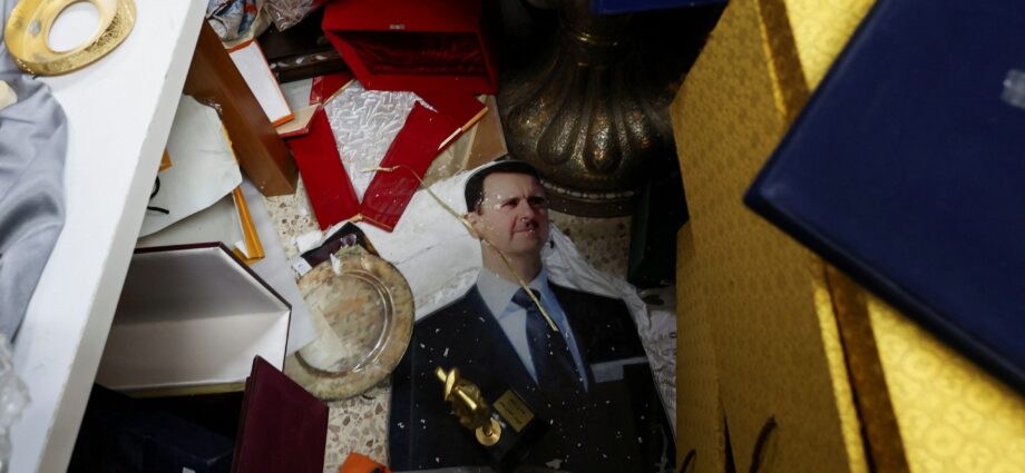 Αντάρτες μαχητές και άμαχοι έκαναν μια βόλτα στους χώρους του προεδρικού μεγάρου του Μπασάρ αλ Άσαντ την Τρίτη, πατώντας πάνω σε τεμαχισμένες αφίσες του πρώην δικτάτορα που είχε καταφύγει στη Ρωσία λίγες μέρες νωρίτερα.
