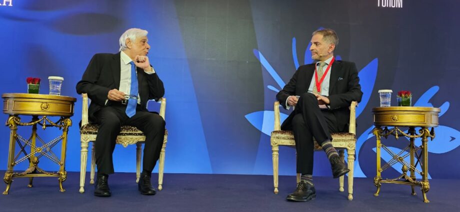 Σημεία συζήτησης του τέως Προέδρου της Δημοκρατίας, Ακαδημαϊκού και Επίτιμου Καθηγητή της Νομικής Σχολής του ΕΚΠΑ, κ. Προκόπη Παυλόπουλου, με τον Πολιτικό Συντάκτη («ΤΟ ΒΗΜΑ») κ. Άγγελο Κωβαίο στο πλαίσιο του Συνεδρίου «Μεταπολίτευση 1974-2024: 50 χρόνια Εξωτερικής Πολιτικής» που οργάνωσαν «The Council: Greece in Global Affairs», το «Delphi Economic Forum» και «ΤΟ ΒΗΜΑ».