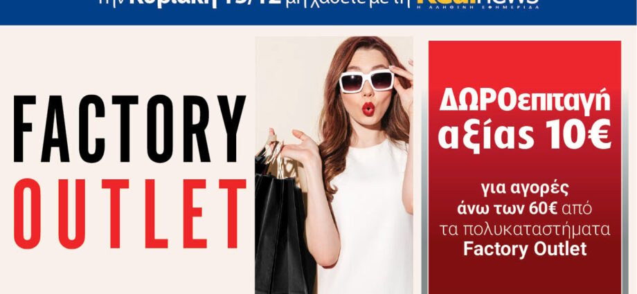 Την Κυριακή με τη Realnews: Δωροεπιταγή 10€ 07:00, Παρασκευή 13 Δεκεμβρίου 2024 Media Δωροεπιταγή αξίας 10€ για αγορές άνω των 60€ από τα πολυκαταστήματα FactoryOutlet