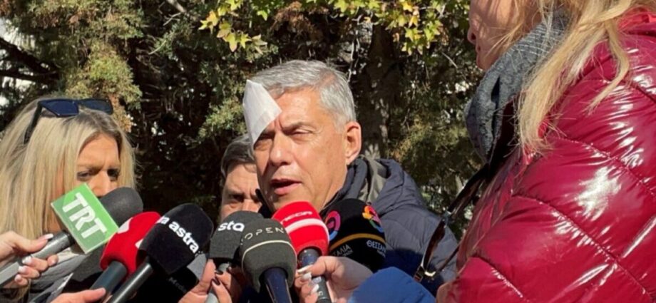 Ο Κώστας Αγοραστός, έχοντας γάζα στο κεφάλι του, αναφέρθηκε στο χρονικό της επίθεσης που δέχθηκε με χτυπήματα και κλωτσιές, αλλά και την ευθύνη που φέρει ο νυν περιφερειάρχης, Δημήτρης Κουρέτας, που δεν ενημέρωσε για την παρουσία τους και δεν «πήρε τα κατάλληλα μέτρα».