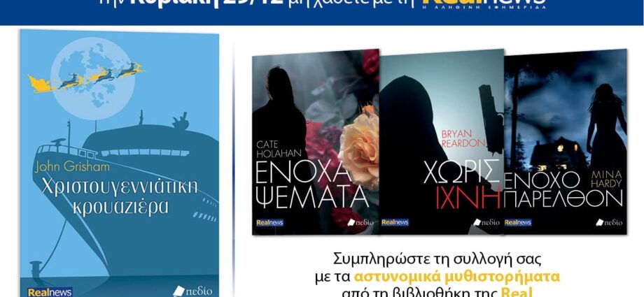 Αυτή την Κυριακή με τη Realnews: «Χριστουγεννιάτικη κρουαζιέρα» της John Grisham – Μαζί αστυνομικά μυθιστορήματα 08:00, Δευτέρα 23 Δεκεμβρίου 2024 Media Αυτή την Κυριακή με τη Realnews: «Χριστουγεννιάτικη κρουαζιέρα» της John Grisham, – Μαζί αστυνομικά μυθιστορήματα.