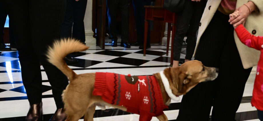 Όμως, την παράσταση έκλεψε ο Πίνατ ο γλυκός σκυλάκος που εδώ και χρόνια κατοικοεδρεύει στο Μέγαρο Μαξίμου και έχει κλέψει τη δόξα από ένα άλλο διάσημο πρωθυπουργικό κατοικίδιο, τον Λάρι της Ντάουνινγκ Στριτ.