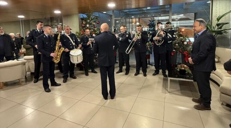 Η μπάντα της Ελληνικής Αστυνομίας, οι εθελοντές του “Ερυθρού Σταυρού”, η Φιλαρμονική Ορχήστρα του Δήμου Θεσσαλονίκης και η Στρατιωτική Μουσική Γ΄ Σώματος Στρατού “Μέγας Αλέξανδρος” έψαλλαν τα χριστουγεννιάτικα κάλαντα στον κ. Γκιουλέκα. Ο υφυπουργός τους καλωσόρισε στο ΥΜΑΘ, τους ευχήθηκε για τα Χριστούγεννα και δήλωσε: “Οι ‘Αγιες Ημέρες των Χριστουγέννων αναγεννούν την ελπίδα για έναν καλύτερο και ειρηνικό κόσμο. Εύχομαι σε όλους υγεία, συλλογική και ατομική προκοπή, αισιοδοξία και ευημερία. Με εθνική υπερηφάνεια να συνεχίσουμε… Πηγή