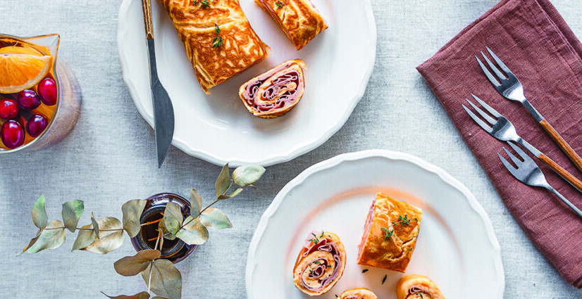Ομελέτα ρολό με καπνιστή γαλοπούλα και τυρί κρέμα