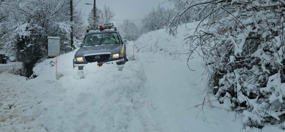 Πυκνό χιόνι στην Οίτη και τα ορεινά χωριά στη Λαμία
