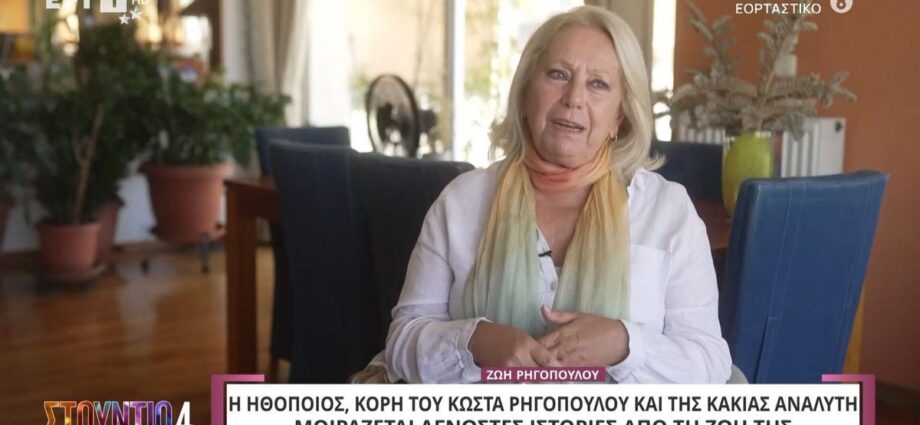 Η ηθοποιός Ζωή Ρηγοπούλου, κόρη των αείμνηστων Κώστα Ρηγόπουλου και Κάκιας Αναλυτή, μίλησε στην κάμερα της εκπομπής «Στούντιο 4», περιγράφοντας στιγμές από την παιδική της ηλικία, τη σχέση με τους γονείς της και τους θρύλους του ελληνικού κινηματογράφου που σημάδεψαν τη ζωή της.