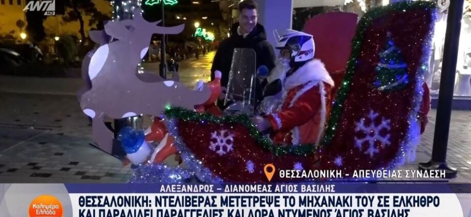 Θεσσαλονίκη: Οδηγός ντελίβερι διανέμει παραγγελίες ντυμένος Άγιος Βασίλης – Μετέτρεψε το μηχανάκι του σε… έλκηθρο