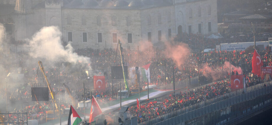 Στους δρόμους της Κωνσταντινούπολης βγήκαν το πρωί της Πρωτοχρονιάς χιλιάδες Τούρκοι προκειμένου να διαδηλώσουν υπέρ των Παλαιστινίων.