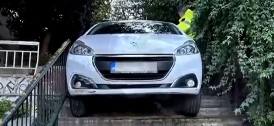 Το συμβάν, που εκτυλίχθηκε στην οδό Αηδόνων, άφησε έκπληκτους τους κατοίκους της περιοχής, καθώς το λευκό I.X. εγκλωβίστηκε στα σκαλοπάτια αποφεύγοντας τα χειρότερα.