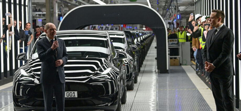 Στις 2 Οκτωβρίου του 2020 η τότε καγκελάριος της Γερμανίας Άνγκελα Μέρκελ επαινούσε το σχέδιο κατασκευής του giga εργοστασίου της Tesla του Έλον Μασκ στο Βρανδεμβούργο ως «πρότυπο». Στις 22 Μαρτίου του 2022 ο διάδοχός της, Όλαφ Σολτς, εγκαινίαζε τη λειτουργία του εργοστασίου στο πλευρό του ιδιοκτήτη του που έγραφε τότε στο «Χ»: «Ευχαριστώ, Γερμανία!».