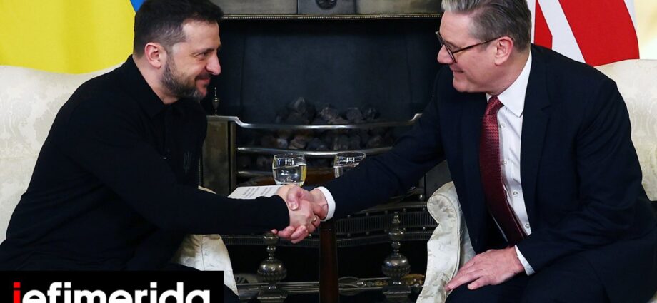 Ο Ουκρανός πρόεδρος, τον οποίο χειροκρότησαν δεκάδες άνθρωποι που είχαν συγκεντρωθεί μπροστά από τη Ντάουνινγκ Στριτ, είχε χθες στο Λονδίνο θερμή συνομιλία με τον Βρετανό πρωθυπουργό Κιρ Στάρμερ, ο οποίος τον διαβεβαίωσε για την «απόλυτη αποφασιστικότητα» της Βρετανίας να στηρίξει το Κίεβο έναντι της ρωσικής εισβολής.