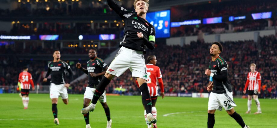Η… σεληνιασμένη Άρσεναλ «σκόρπισε» την Αϊντχόφεν μέσα στην Ολλανδία (1-7) και στην ουσία πανηγυρίζει από τώρα την πρόκρισή της στους «8» του Champions League (εκεί θα αντιμετωπίσει Ρεαλ ή Ατλέτικο).