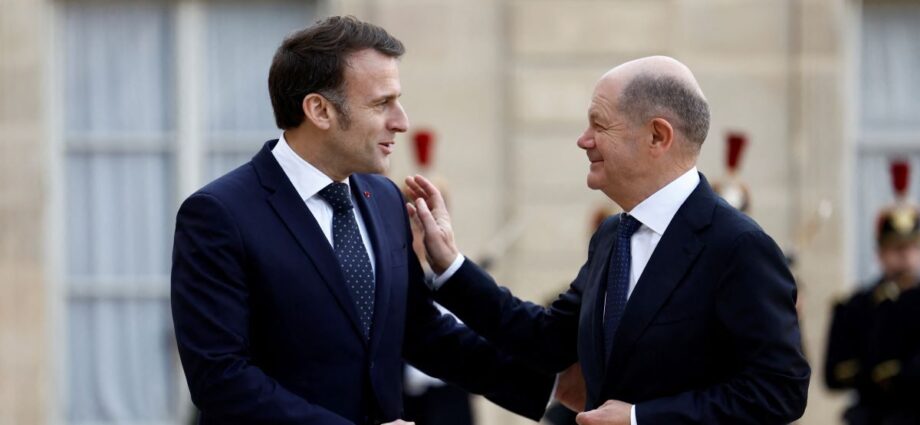 Ο πρόεδρος της Γαλλίας, Εμανουέλ Μακρόν με τον Γερμανό καγκελάριο, Όλαφ Σολτς / REUTERS / Abdul Saboor
