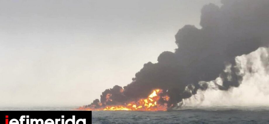Φλόγες και πυκνός καπνός από την σύγκρουση πλοίων στη Βόρεια Θάλασσα/Bartek Śmiałek via AP