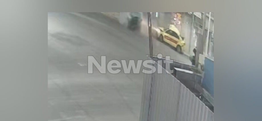 Η στιγμή της σύγκρουσης του ταξί με το αυτοκίνητο στη Λεωφόρο Θηβών στο Περιστέρι
