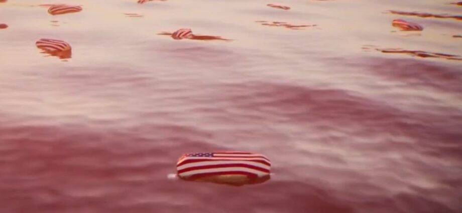 Το προπαγανδιστικό βίντεο ξεκινά με ένα φέρετρο καλυμμένο με…