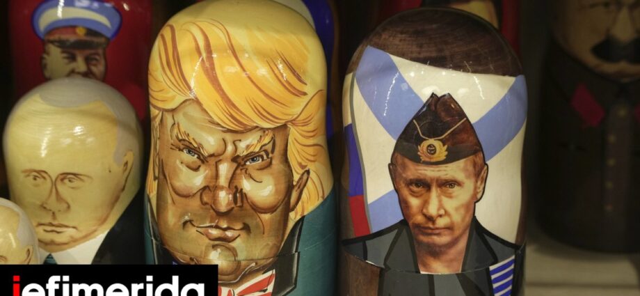 Οι φιγούρες των Ντόναλντ Τραμπ και Βλαντίμιρ Πούτιν πάνω σε ρωσικές ξύλινες κούκλες / AP
