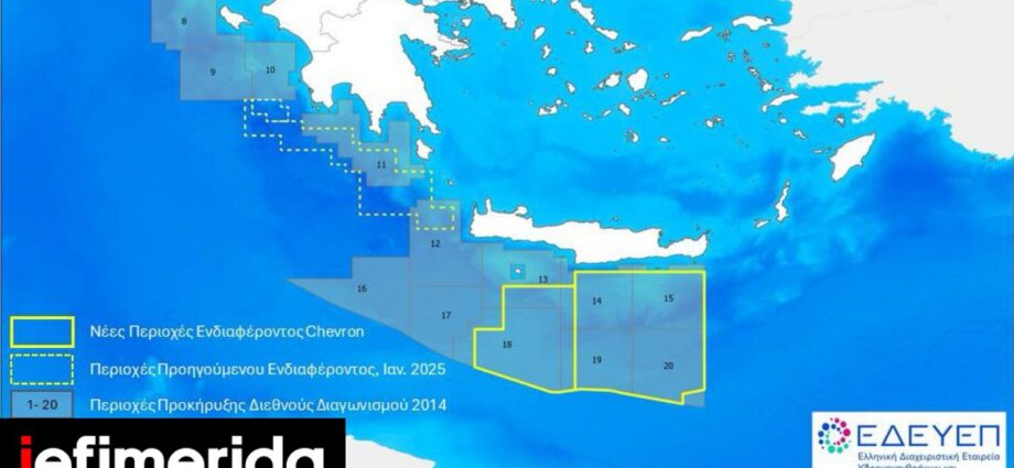 Η Chevron, η δεύτερη μεγαλύτερη παγκοσμίως ιδιωτική αμερικανική εταιρεία ενέργειας που δραστηριοποιείται στον κλάδο των υδρογονανθράκων, εκδήλωσε το ενδιαφέρον της για έρευνα σε δύο ακόμη θαλάσσια οικόπεδα που εκτείνονται στα νότια της Κρήτης και βρίσκονται εντός των ορίων των περιοχών, όπως αυτές δημοσιεύτηκαν από την ελληνική κυβέρνηση με την προκήρυξη του σχετικού διεθνούς διαγωνισμού το 2014.