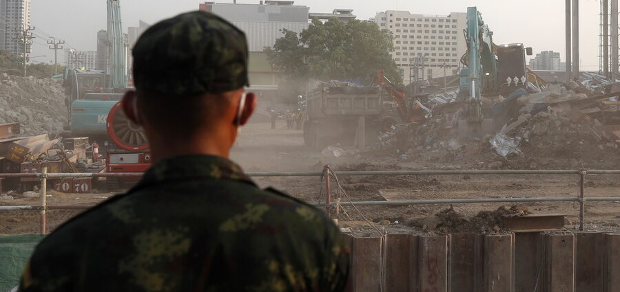 Οι αρχές της Ταϊλάνδης παλεύουν να διαχειριστούν τις συνέπειες του καταστροφικού σεισμού της γείτονος χώρας Μιανμάρ, βαρέα μηχανήματα μετακινούν μεγάλες ποσότητες ερειπίων, ενώ η ελπίδα φίλων και μελών των οικογενειών των αγνοουμένων να βρεθούν ζωντανοί φθίνει.