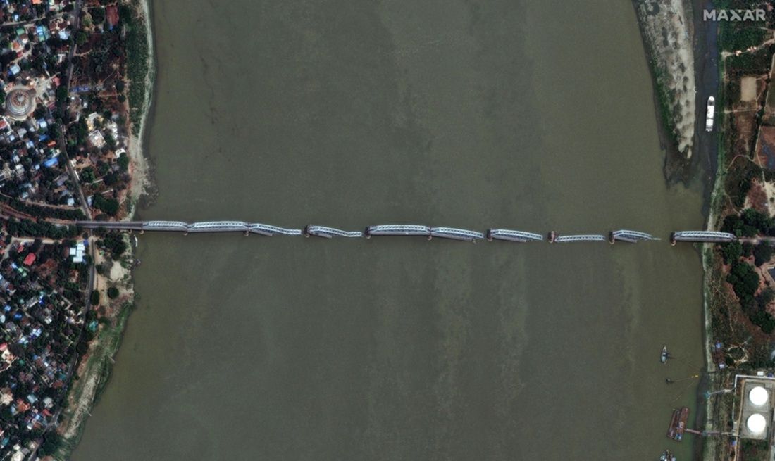 Οι δορυφορικές φωτογραφίες της αμερικανικής αεροδιαστημικής εταιρείας Maxar αποτυπώνου το μέγεθος της τεράστιας καταστροφής, καθώς ολόκληρες γειτονιές και παγόδες έχουν ισοπεδωθεί και γέφυρες έχουν καταρρεύσει.