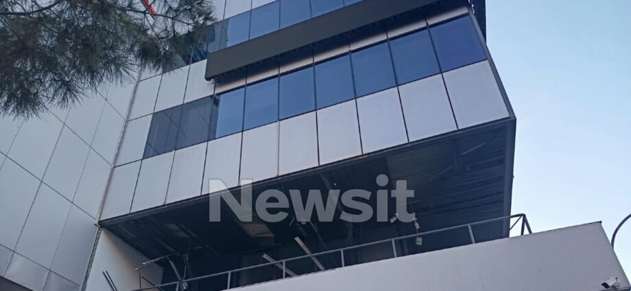 Εμφανείς οι ζημιές στο κτίριο που στεγάζονται τα γραφεία της Hellenic Train μετά την έκρηξη της βόμβας