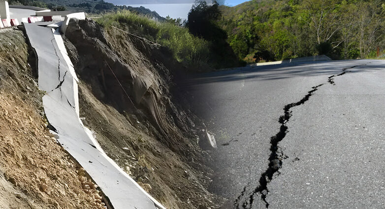 Βομβαρδισμένο τοπίο θυμίζει το 12ο χιλιόμετρο Αγιοκάμπου – Κεραμιδίου, λίγο πριν τη θέση «Μεταλλείο», στον υπό κατασκευή παραλιακό άξονα Ρακοπόταμος – Κεραμίδι.