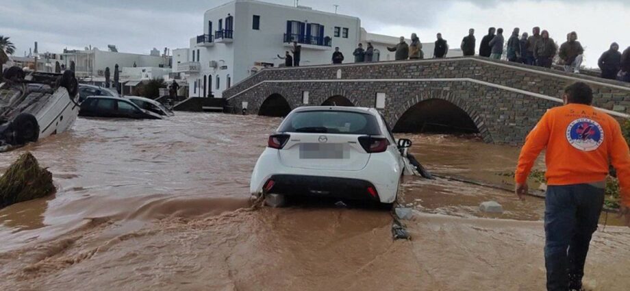 Στην Πάρο και ειδικότερα στη Νάουσα, η ένταση της βροχής δημιούργησε ορμητικούς χείμαρρους οι οποίοι παρέσυραν οχήματα και προκάλεσε ζημιές.