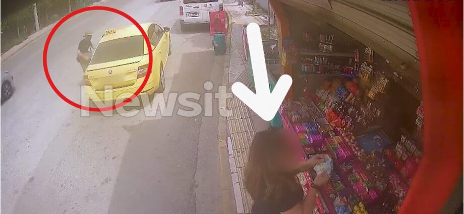 Εκείνη τη στιγμή ένας 46χρονος άνδρας ο οποίος φοράει μαύρα ρούχα και καπέλο κινείται με αργά βήματα. Περνάει μπροστά από περίπτερο και το ταξί και κατευθύνεται προς τη στάση των λεωφορείων. Θα καθίσει εκεί, ενώ το βλέμμα του είναι στραμμένο προς το ταξί.