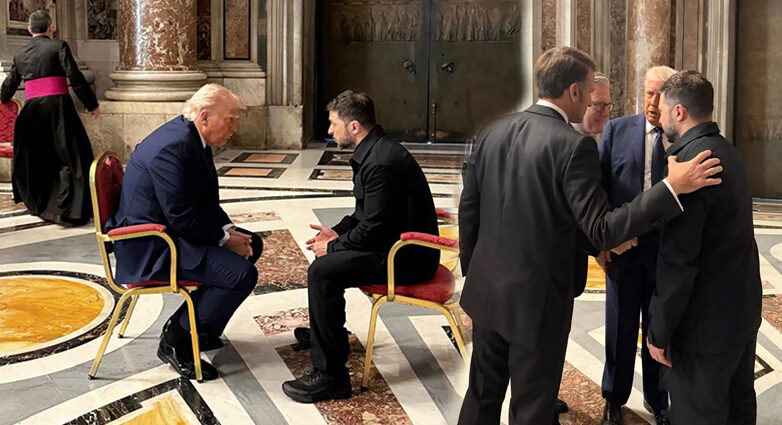 Στην τελετή της κηδείας του Πάπα Φραγκίσκου, ο Ντόναλντ Τραμπ συναντήθηκε με τον Βολοντίμιρ Ζελένσκι, ενώ στο περιθώριο του κοσμοϊστορικού γεγονότος του αποχαιρετισμού στον 266ο Ποντίφικα, είχε επαφές με την Ούρσουλα φον ντερ Λάιεν, τον Εμανουέλ Μακρόν…
