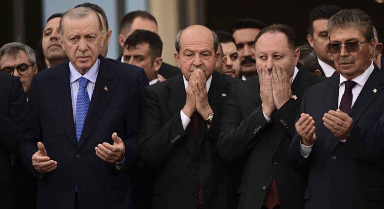 Ο Τούρκος Πρόεδρος μετέβη το Σάββατο, 3 Μαΐου, στην κατεχόμενη Λευκωσία και, συνοδευόμενος από τον Τουρκοκύπριο ηγέτη Ερσίν Τατάρ, πήγε αμέσως στο χώρο όπου τέλεσε τα εγκαίνια των κτηρίων του «Προεδρικού Μεγάρου» και της «Βουλής» που έχτισε η Τουρκία.