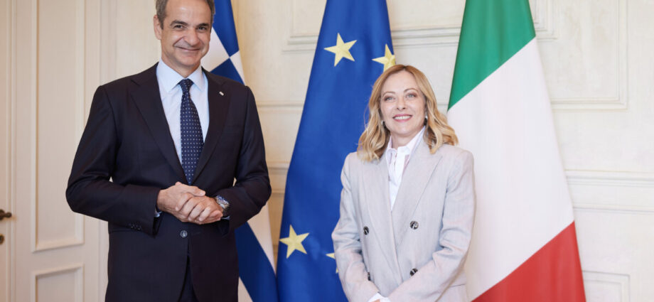 Σε κοινές δηλώσεις προχώρησαν οι Κυριάκος Μητσοτάκης και Τζόρτζια Μελόνι μετά το πέρας των εργασιών της Ολομέλειας του Ανώτατου Συμβουλίου Συνεργασίας Ελλάδας – Ιταλίας. Στο πλαίσιο αυτό πραγματοποιήθηκε και η τελετή ανταλλαγής των συμφωνιών μεταξύ των δύο χωρών. Ads Προηγήθηκε κατ’ ιδίαν συνάντηση των δύο πρωθυπουργών.
