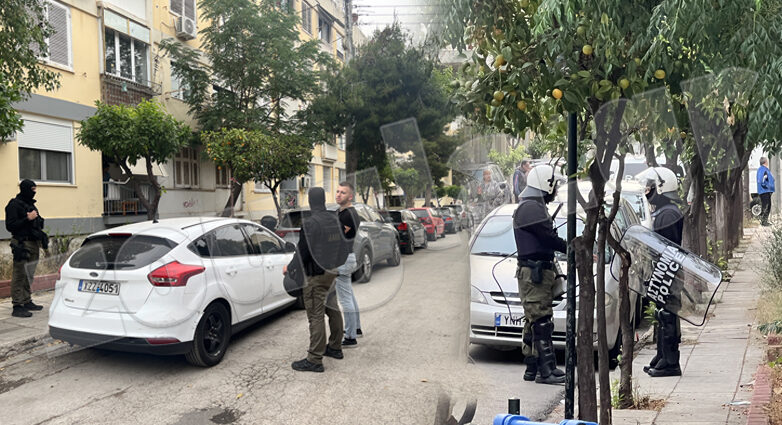 Ολοκληρώθηκε η επιχείρηση της Δίωξης ναρκωτικών και της ΕΚΑΜ στην Αγία Βαρβάρα, με τους αστυνομικούς να αποχωρούν και να κατευθύνονται προς το κτήριο της ΓΑΔΑ και τον 11ο όροφο.
