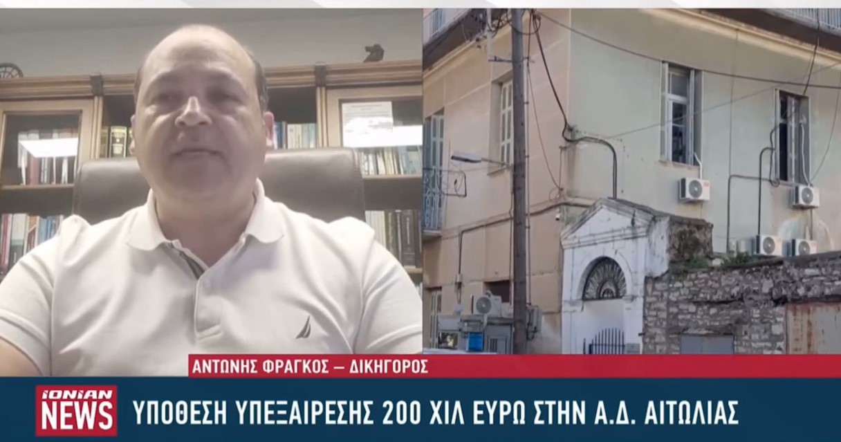 Ο δικηγόρος του φερόμενου ως δράστη της υπεξαίρεσης, Αντώνης Φράγκος, μίλησε στην τηλεόραση του Ionian, τονίζοντας ότι ο εντολέας του έχει αποδεχθεί και ομολογήσει την πράξη του.