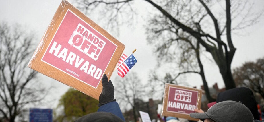 Διαδηλωτές διαμαρτύρονται για την παρέμβαση του Ντόναλντ Τραμπ στο Πανεπιστήμιο Χάρβαρντ / Πηγή φωτογραφίας: REUTERS / Nicholas Pfosi