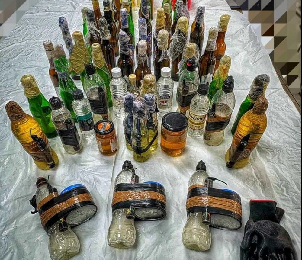 Συνολικά κατασχέθηκαν 49 ακέραιες αυτοσχέδιες εμπρηστικές – εκρηκτικές κατασκευές, δύο άδεια μπιτόνια με έντονη οσμή εύφλεκτου υλικού, ένα μπιτόνι με εύφλεκτο υγρό, και άλλα σύνεργα όπως μάσκες, γάντια, σφουγγάρια, μπουκάλια γυάλινα και πλαστικά,… Πηγή